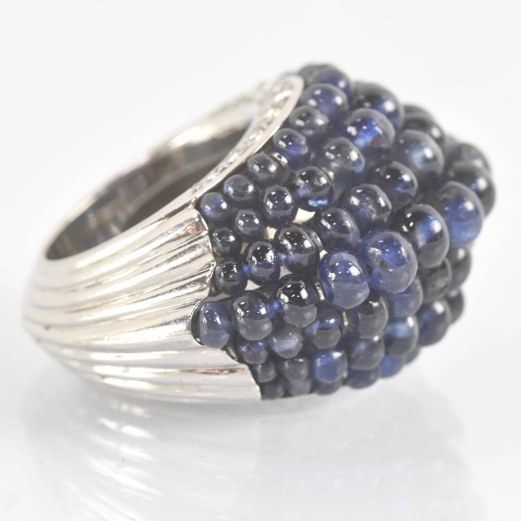 Lot 1178 CARTIER; a white metal cabochon sapphire and diamond set 'Bombe' ring, inscribed 'Cartier Paris', sold for £75,400