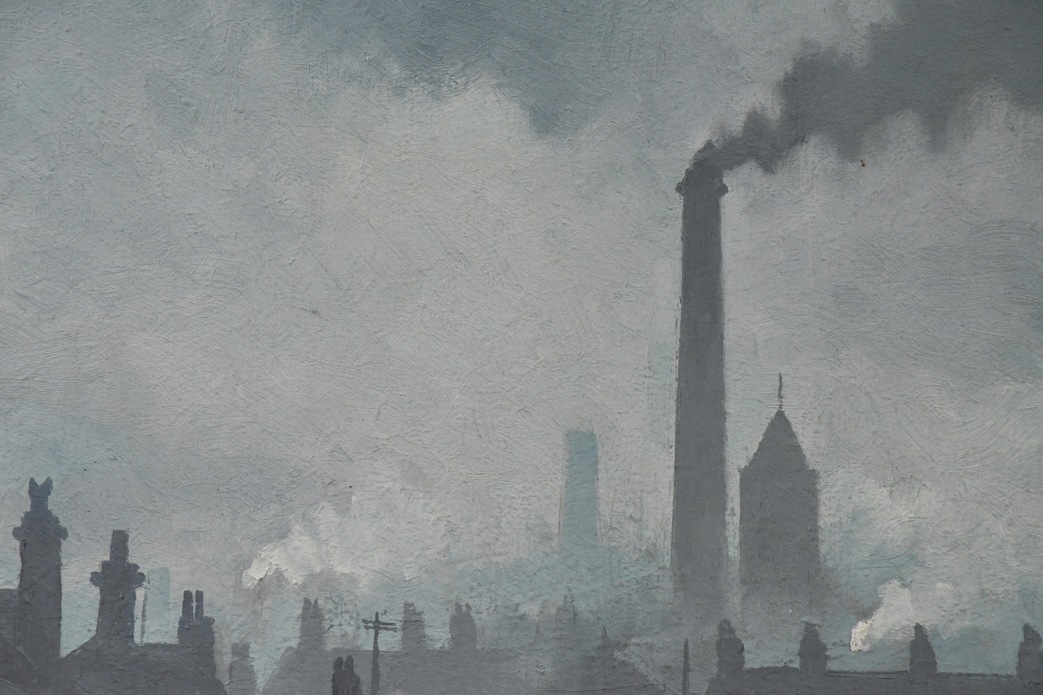 Lot 137 TREVOR GRIMSHAW (1947-2001); oil on board, 'Townscape', sold £2,600